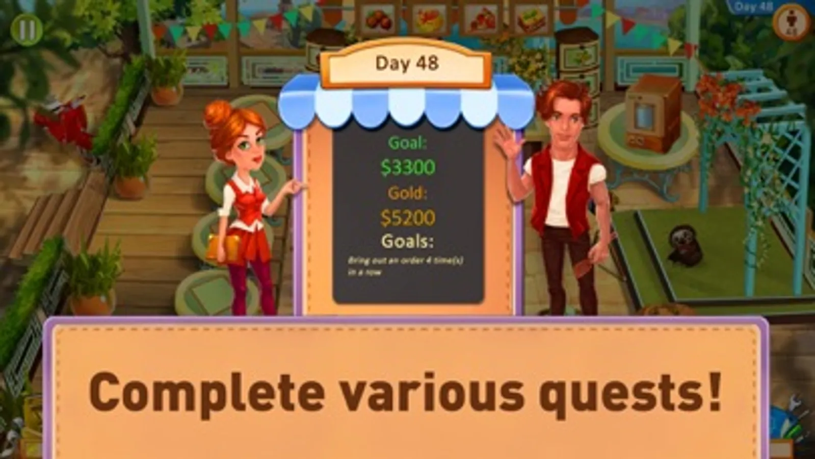 Expect colorful locations, levels of varying difficulty, lots of characters and dishes, bonus quests, the ability to upgrade and develop restaurants, varied achievements, intuitive gameplay for all ages, beautiful music and an exciting plot.