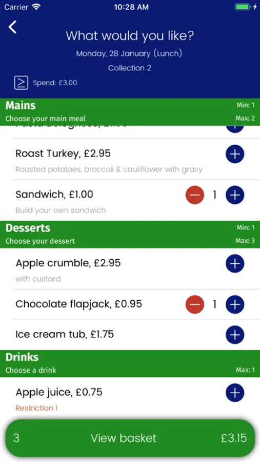 This works by communicating in real time with the school's cashless system (Impact or Fusion) to provide accurate information to both the student and the school kitchen.