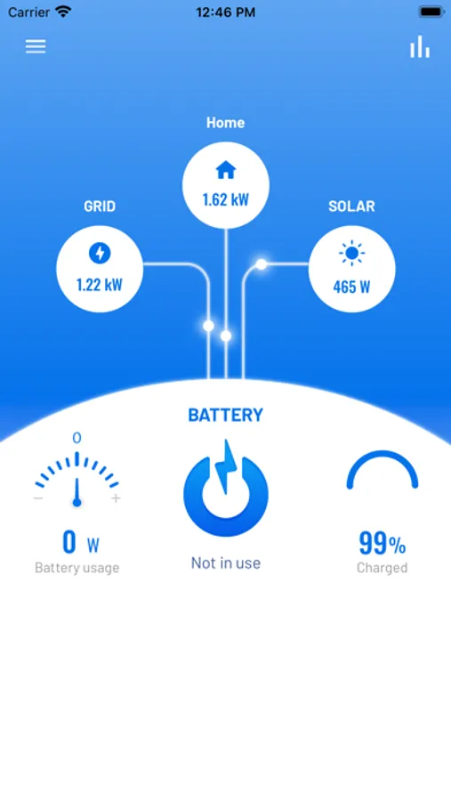 You can see the current status of your system, including the energy inputs, consumption, battery status and time remaining