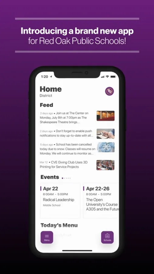 Introducing the brand new app for Red Oak Public Schools.