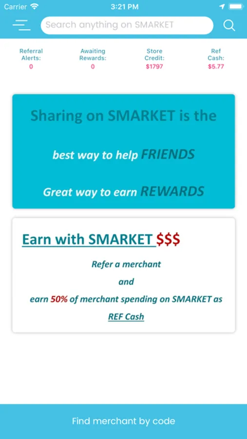 SMARKET provides All-in-One platform for merchants to promote their brand and business. SMARKET helps customers to earn rewards while helping their friends to make wise choices. Hence SMARTER world thru SocialMARKETing.