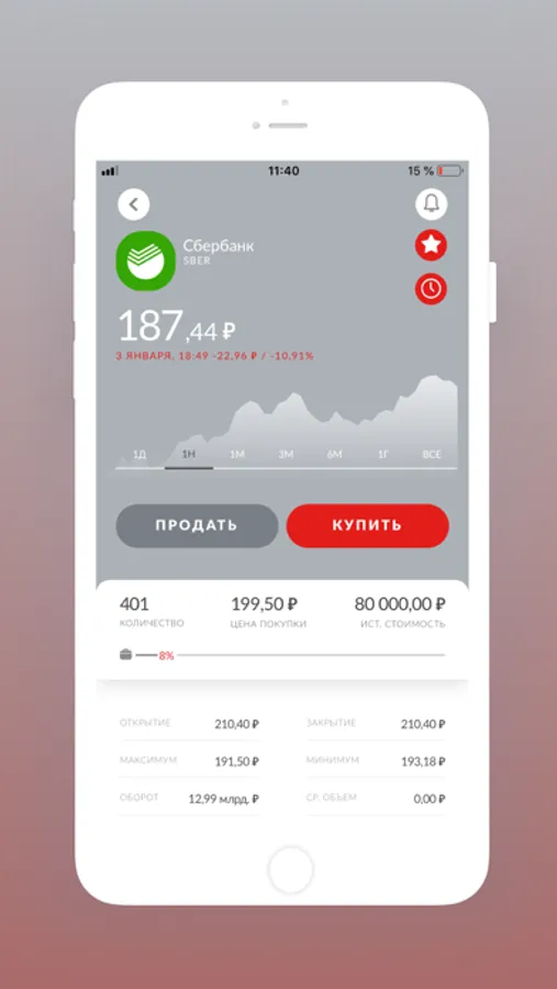 Также клиентам доступна информация по индикативным рыночным котировкам ценных бумаг и графики финансовых инструментов.