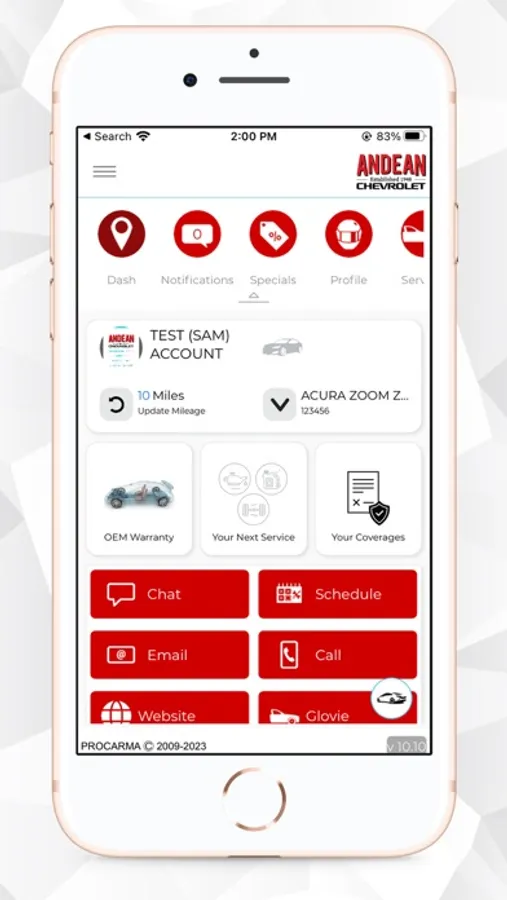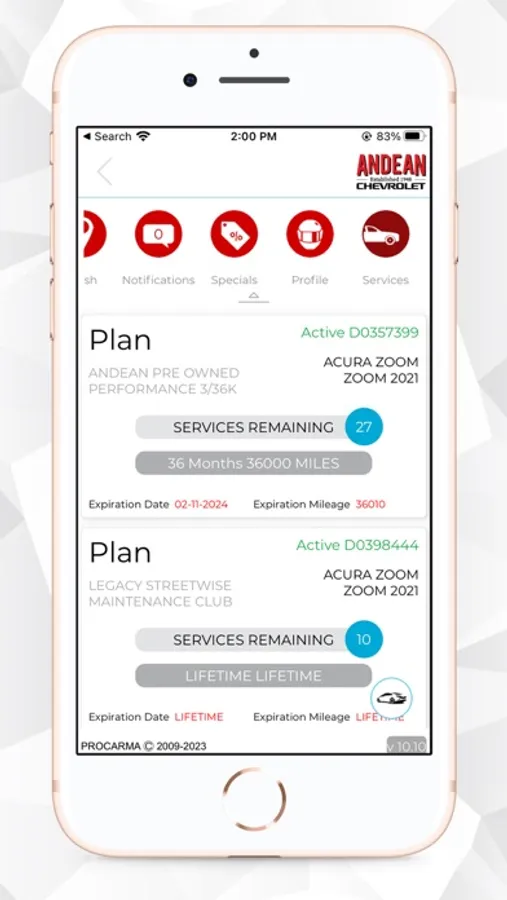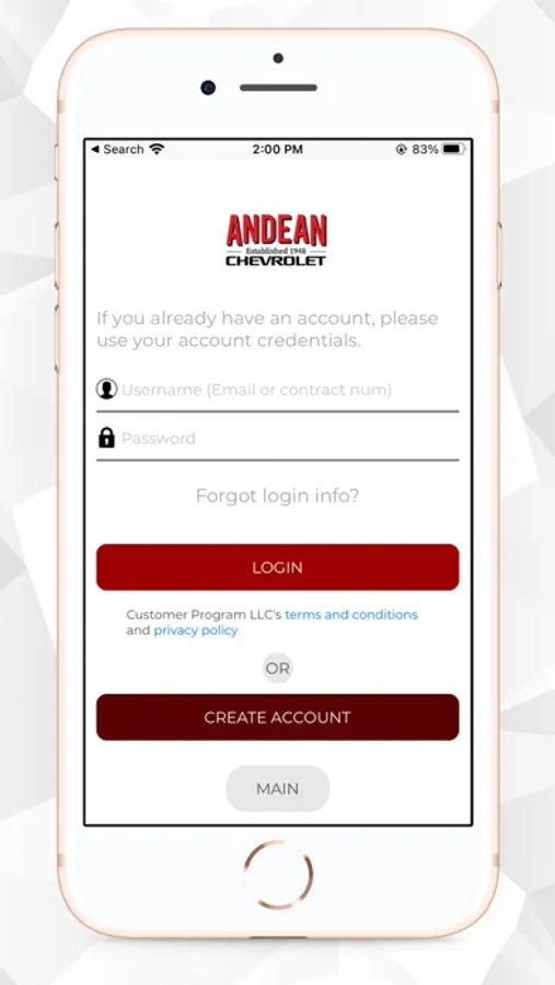 The ANDEAN CHEVROLET app provides a portal for users to: