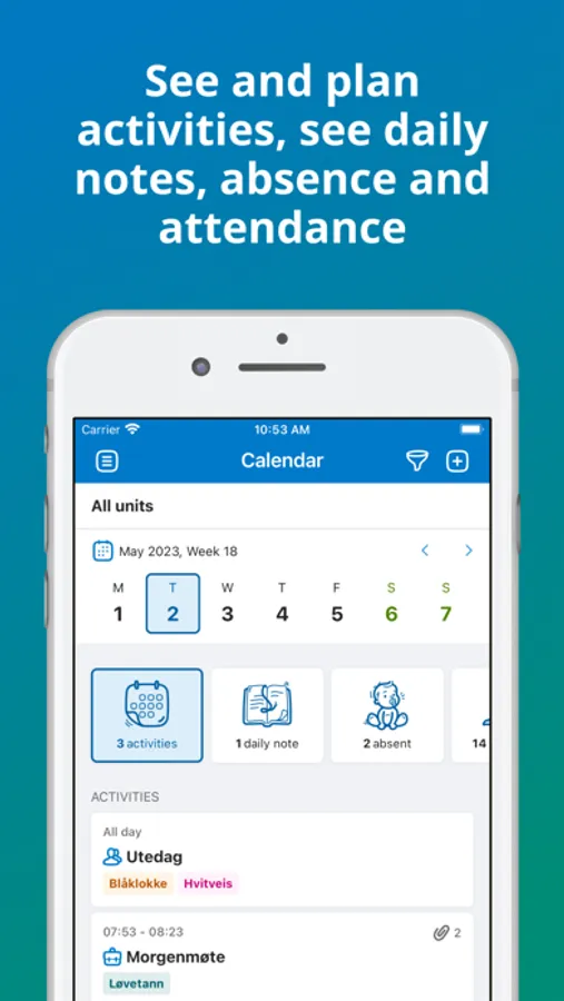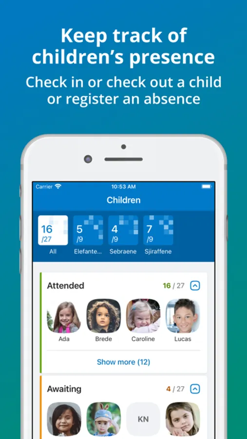 Min Barnehage Ansatt gives you as an employee a good overview of all children in the kindergarten. You will be able to check in and out children and keep track of absence.