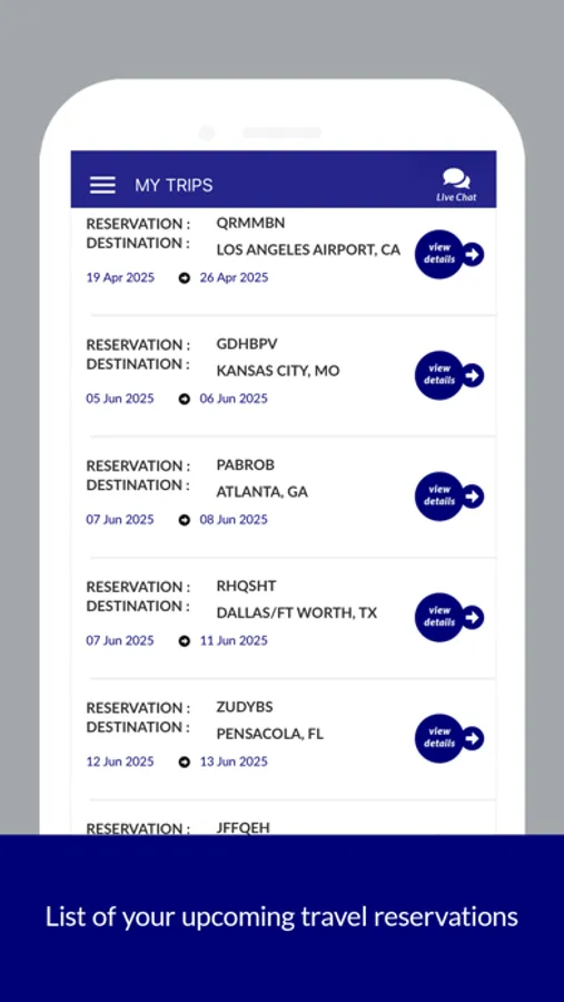 Quickly review all of your upcoming travels, including a detail view of each travel service within your bookings