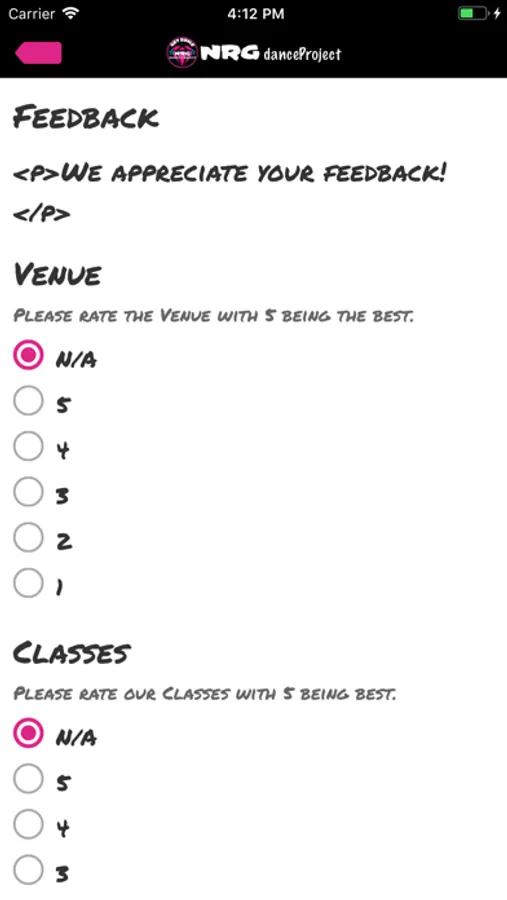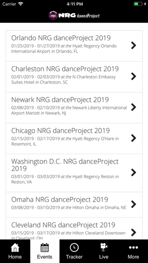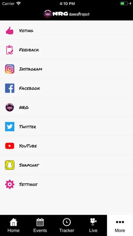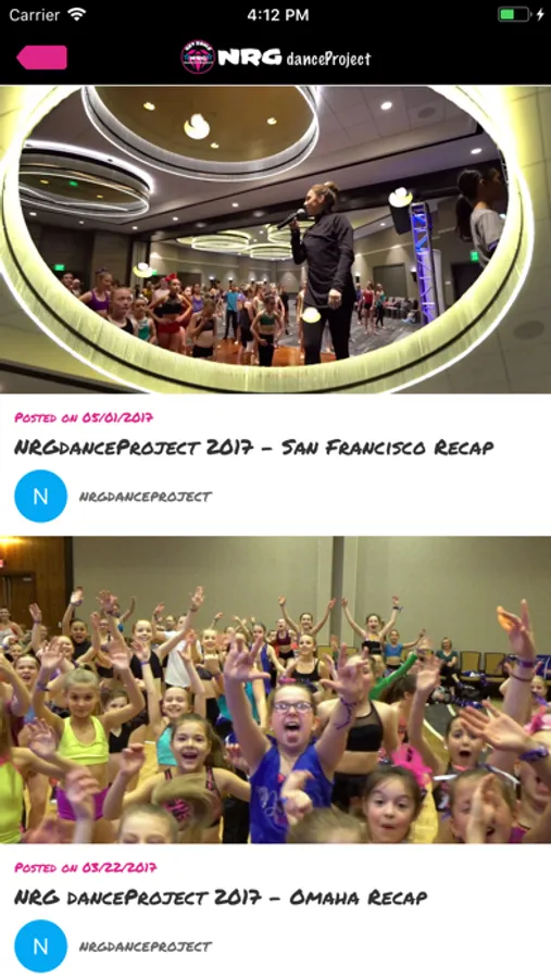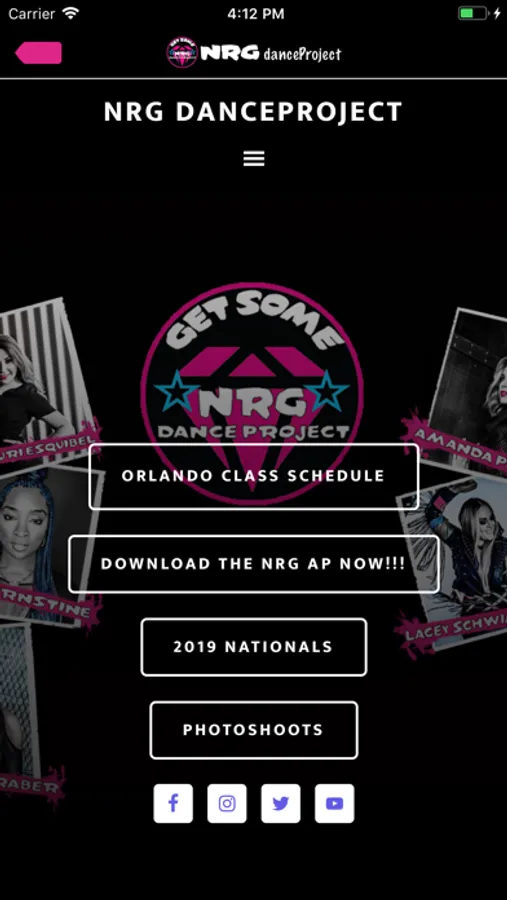 • Instagram, Snapchat and Facebook feeds, as well as access to the NRG DanceProject Website!