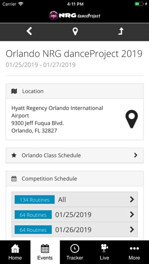 • Live Event Status – see which routine is on stage and up next, Award Presentation and Break times!