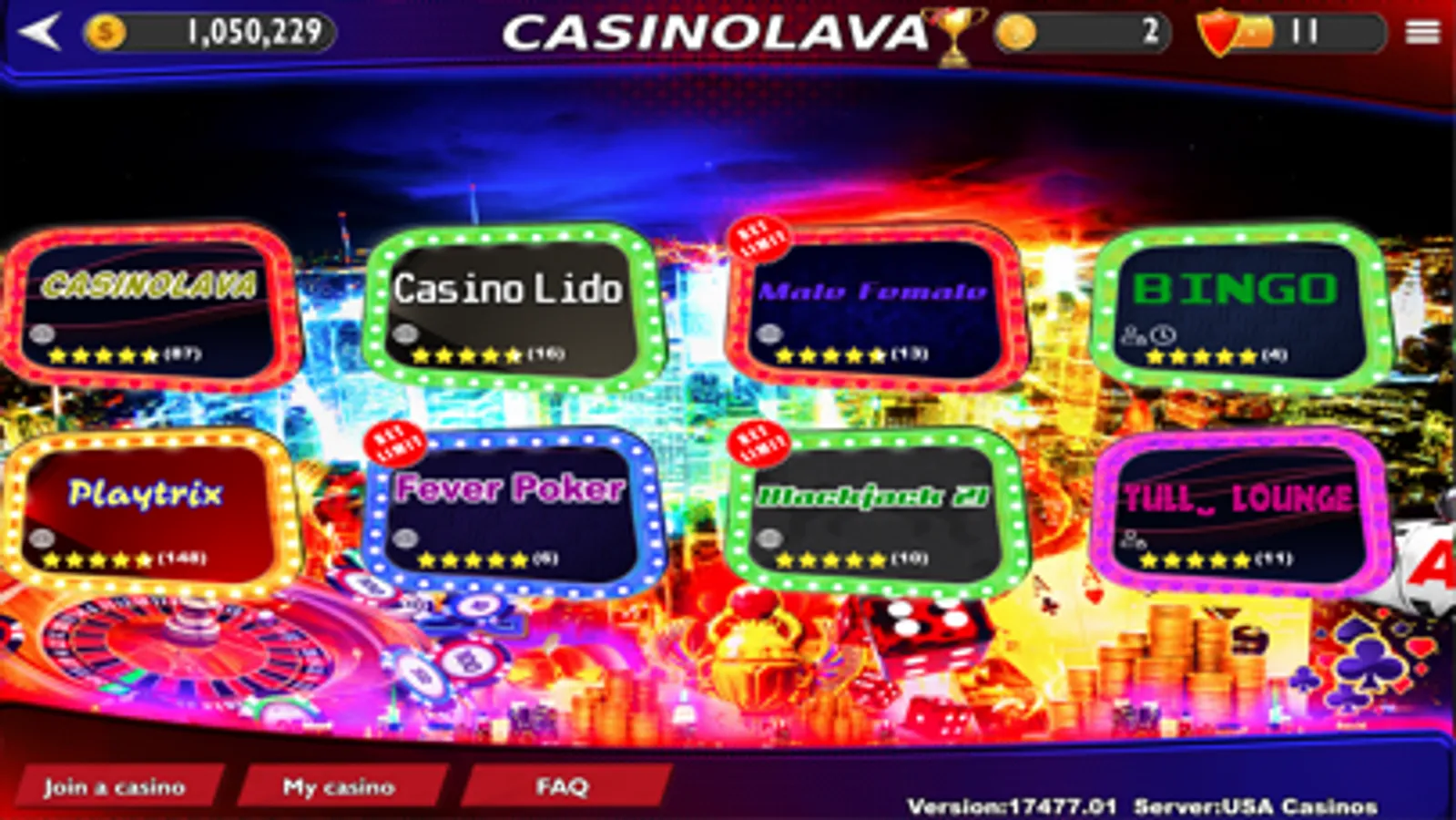 Play the actual real casino and game-room / poker-club games. The real slots, video-pokers, video-blackjack, and more. Win big!