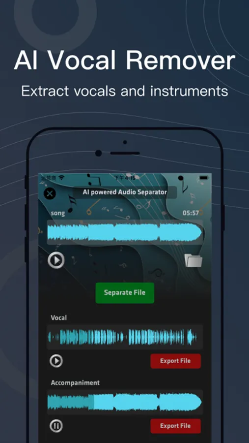 • AI powered vocal remover & vocal extractor: extract instruments and vocals from any audio/video file.