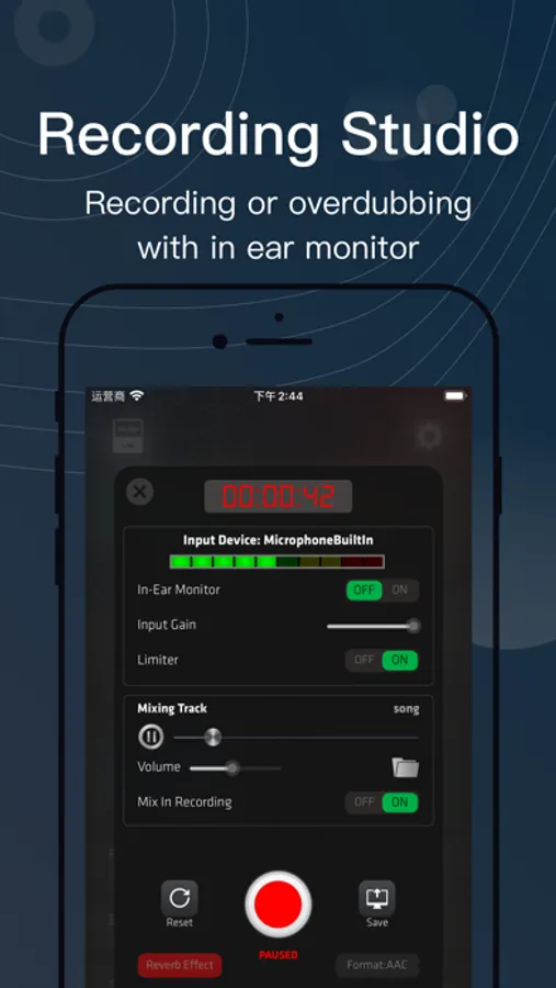 • Audio recorder supports background recording, customize recording bitrate, sample rate and format(AAC / ALAC / WAV).