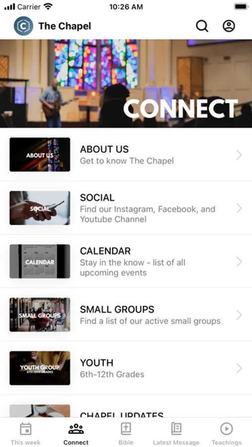 Welcome to The Chapel Cleveland! This app will help you stay connected with the day-to-day life of our church. With this app you can: watch or listen to past messages; stay up to date with push notifications; follow along with our Bible reading plan; share your favorite messages online; and download messages for offline listening.