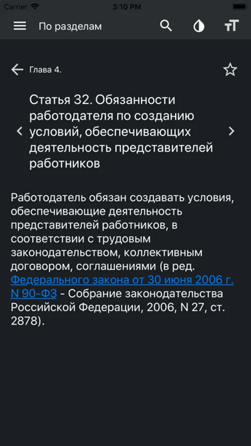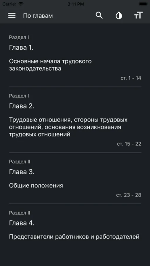 Перелистывание между статьями вправо-влево, аналогично разделы и главы
