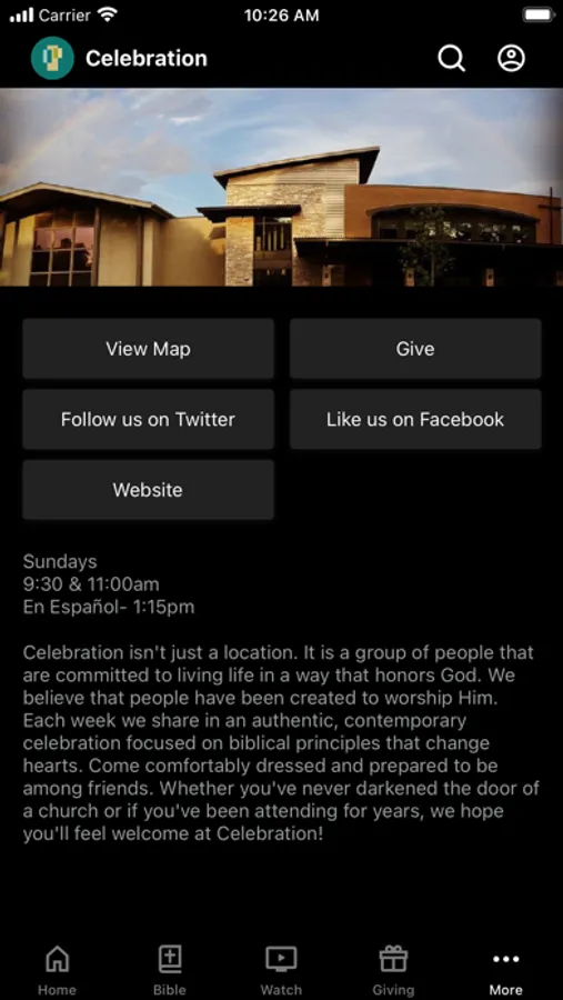 The Celebration App is your one-stop-shop. Learn about missions opportunities, listen to or watch sermons, find a Group, check out the church calendar and so much more.