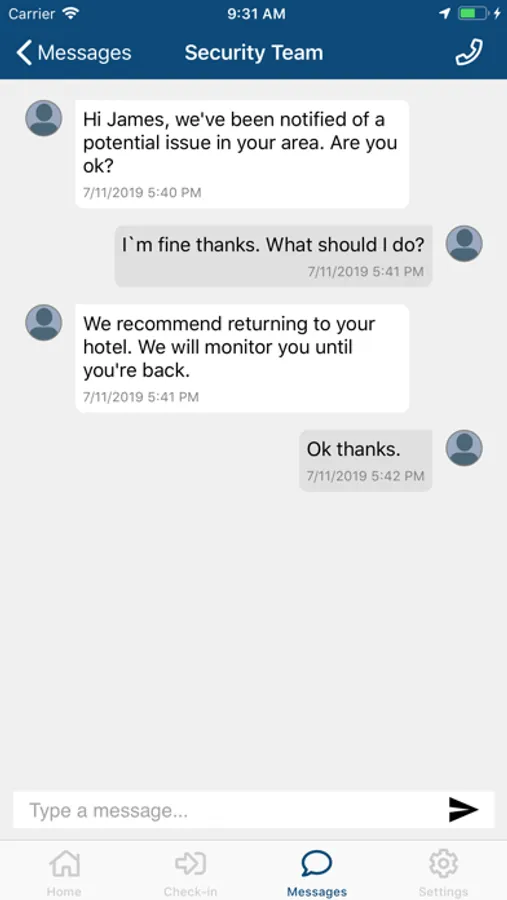 Mass Notification capabilities are also implemented into the Secure Portal, enabling security teams to communicate immediately with employees in the event of an emergency. Mass Notifications can be sent to large groups or people in a specific geographic area. The Notifications are delivered through an In-App message, ensuring quick delivery and audit, focusing on reaching the individual, not just the device.