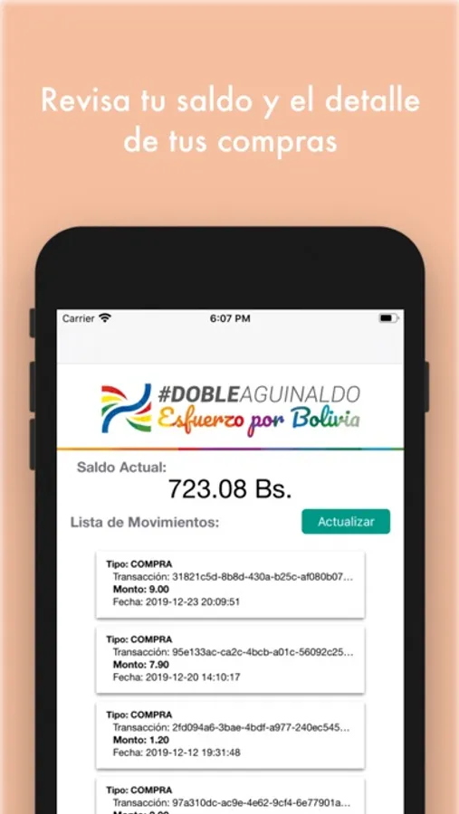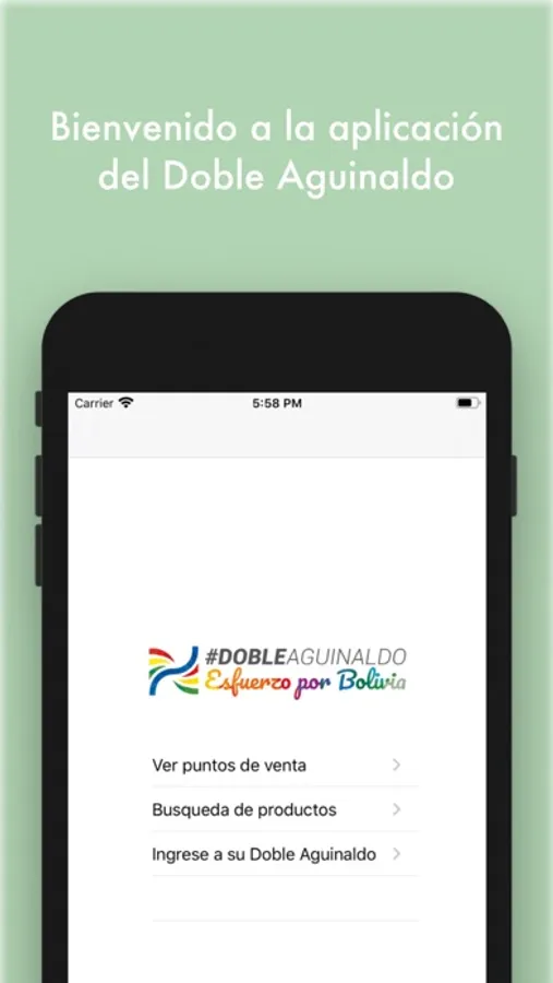 Aplicación destinada a los beneficiarios del doble aguinaldo para facilitar la consulta de saldo disponible, búsqueda de puntos de venta y productos.