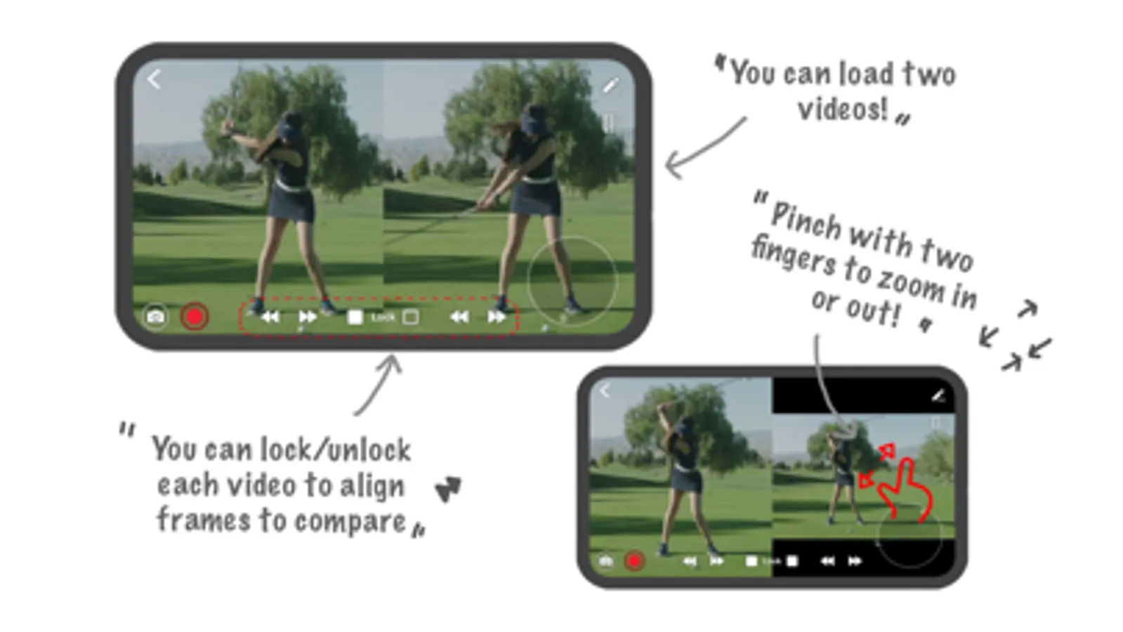 - Compare two videos together (toggle [1] and [1|2] icon)