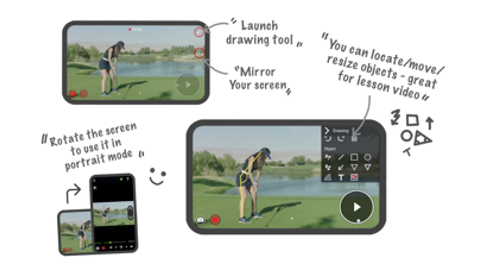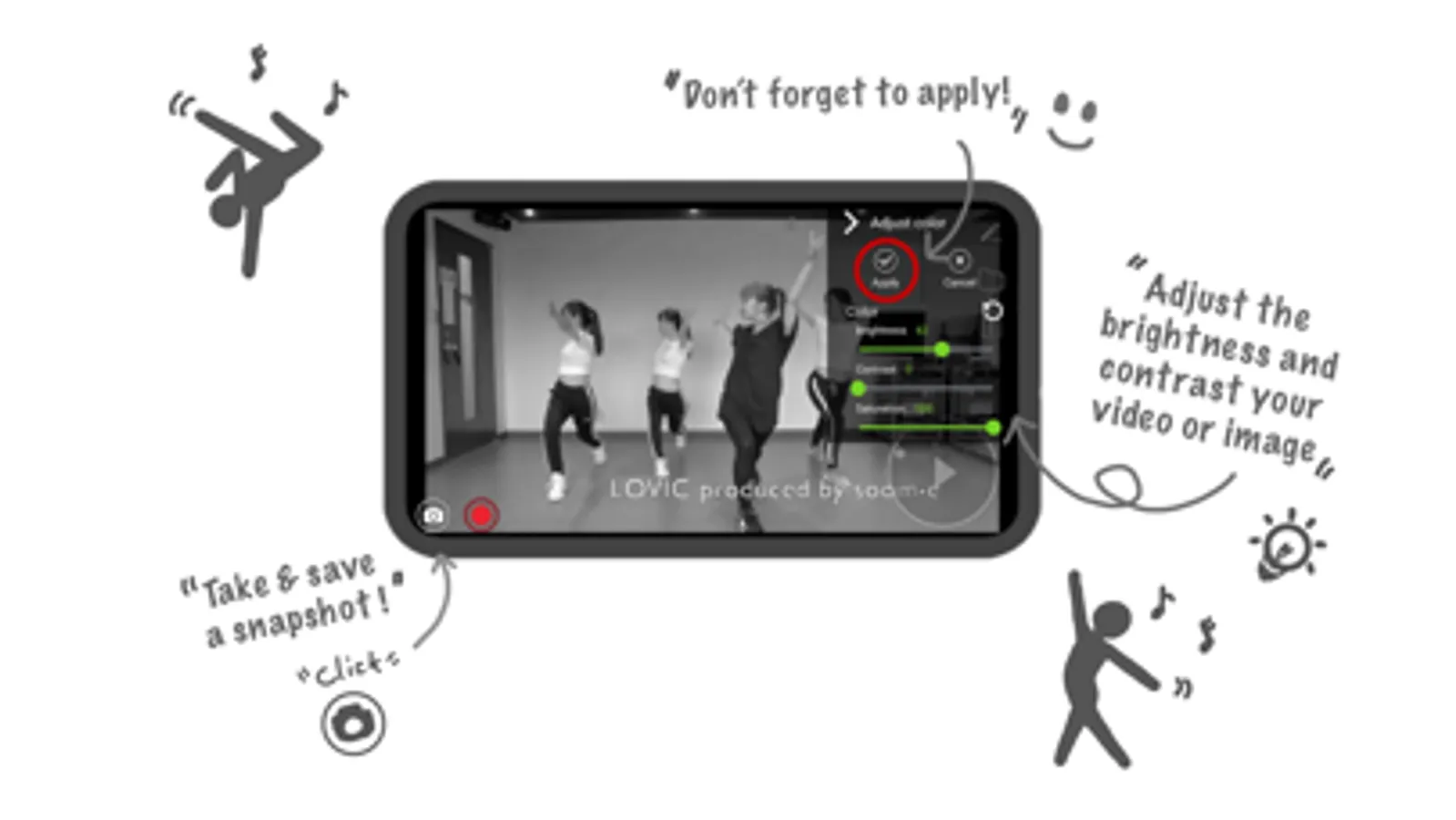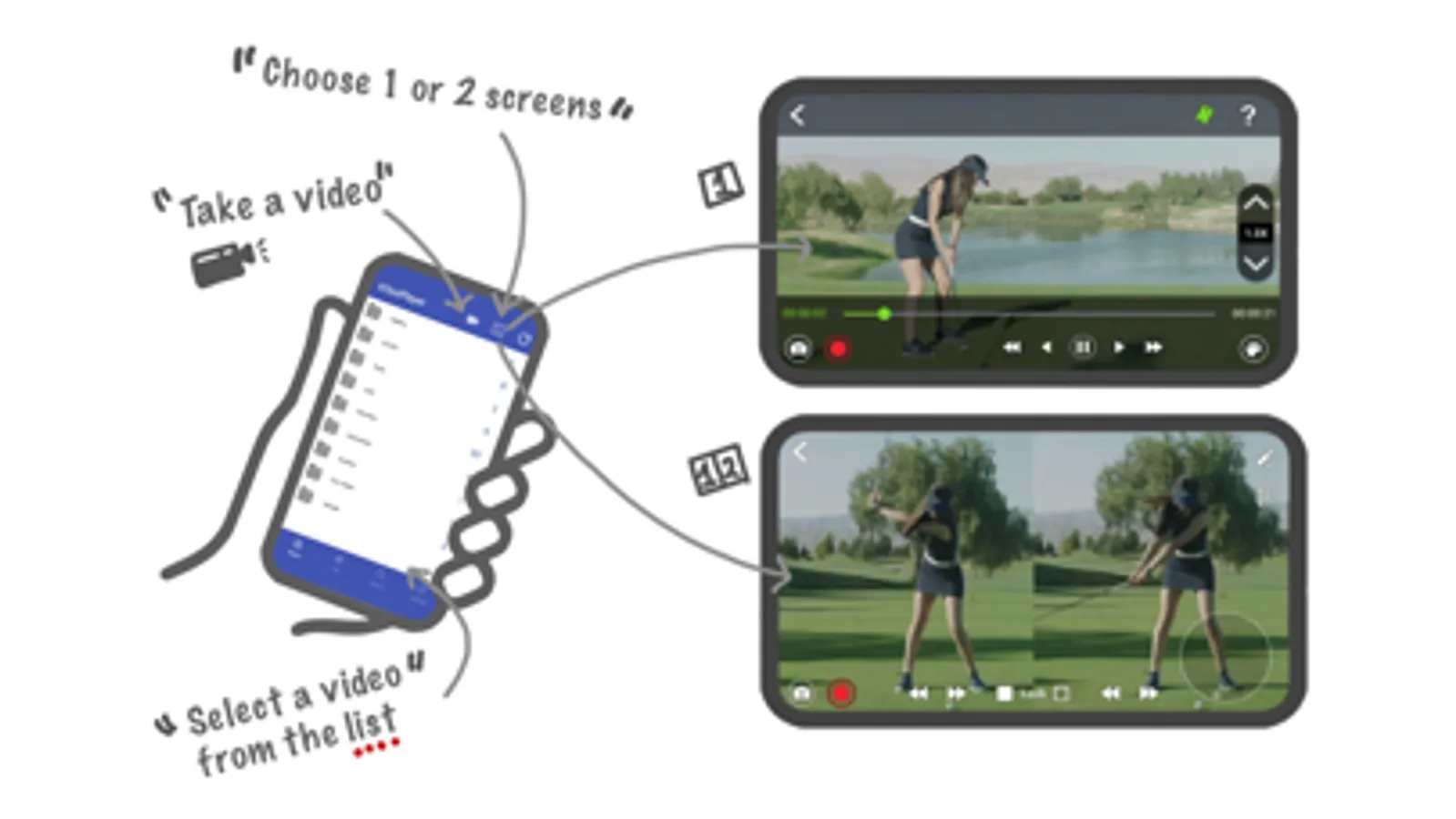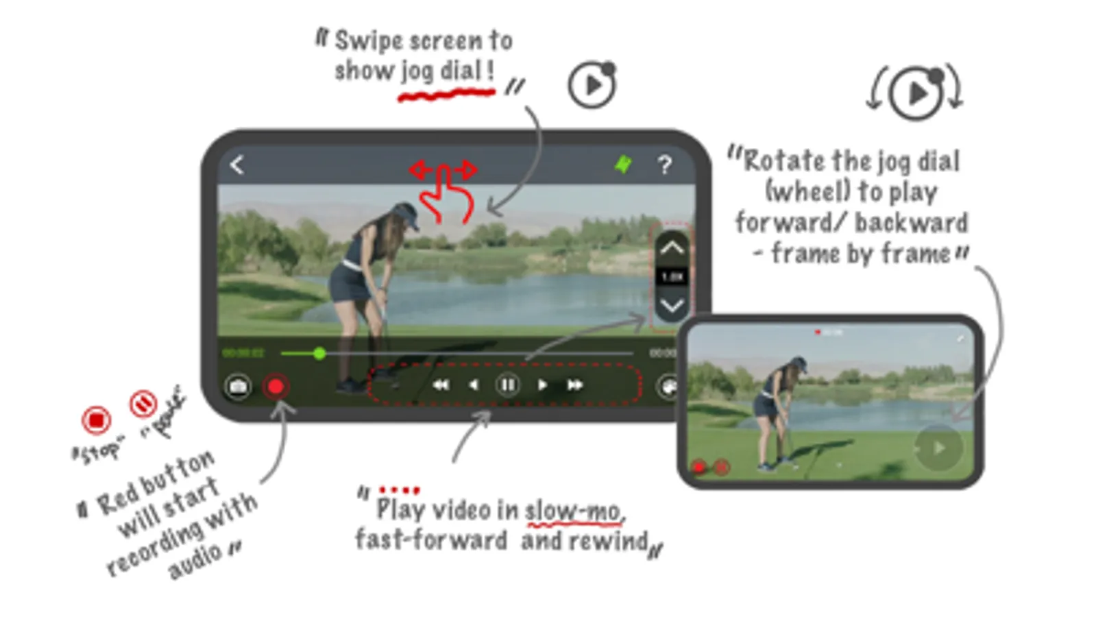 3. Record & snapshot function to save the edited content as a record.You can record the edits from an existing videos as new video and snapshot. You can easily create video materials for your own sports or dance lessons without special tools. For example, to analyze a golf swing, you can repeatedly review multiple videos that highlight a particular part and continue to make revisions.