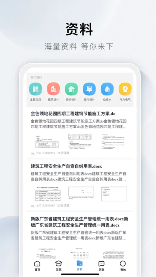 建筑生命全周期:工程图纸、规范标准、造价、专业论文、技术文档、专业软件等多个领域。