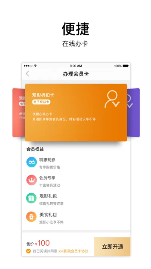 1、提供影城会员卡购票,及非会员用户在线选座购票