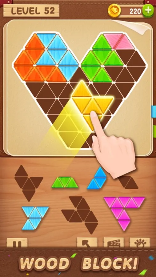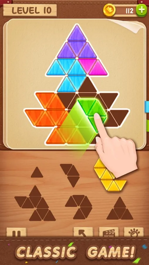 It contains a variety of block puzzle shapes in the game, such as triangle, hexagon,Square.