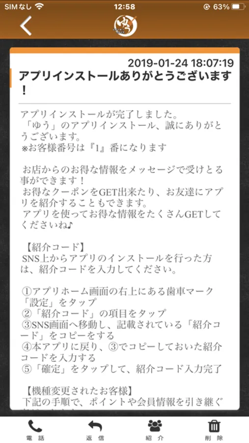 ゆうのアプリをSNSを通じてお友達に紹介する事ができます。