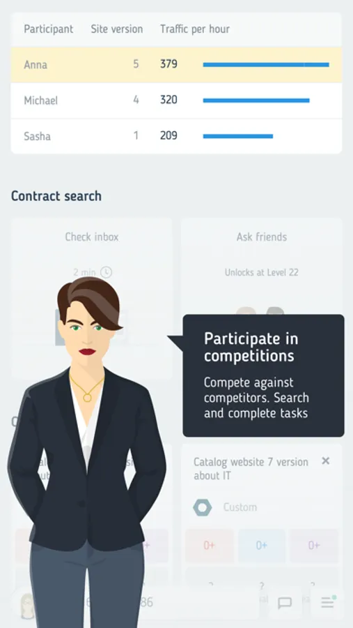 Participate in competitions against other players or complete lucrative projects for third-party clients.