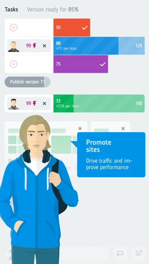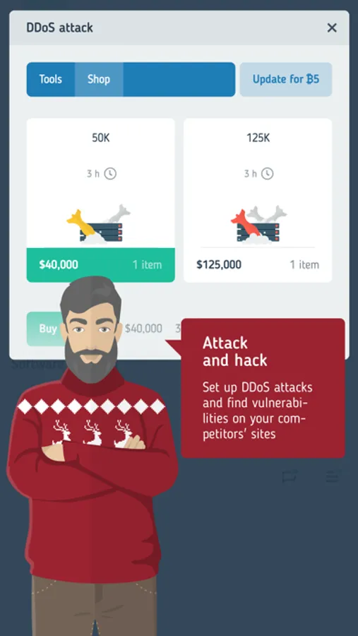 It's up to you which way to choose to increase traffic and promote your site. Exchange links with other players, keep your content fresh, place spam links or maybe launch hacker attacks? The game offers various real-life scenarios.