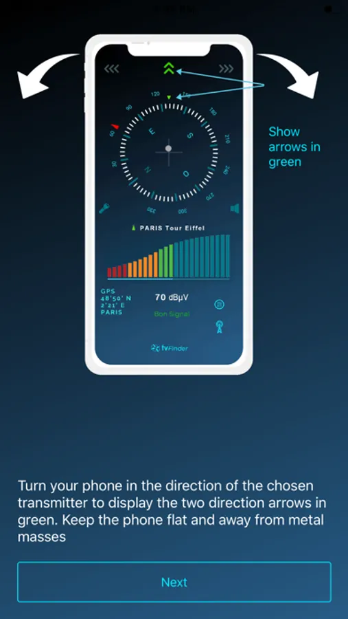 TV Finder est un outil qui vous aidera à mettre en place votre Antenne. Il communique avec les antennes connectées D-Home Patch, Classic et Caravan dotées de la mesure automatique du niveau de signal en temps réel.