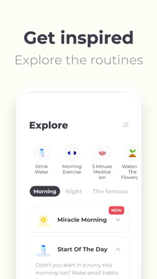 Explore and challenge yourself with popular habits and routines, including those followed by celebrities. Discover a variety of habits and routines you might not have considered before.