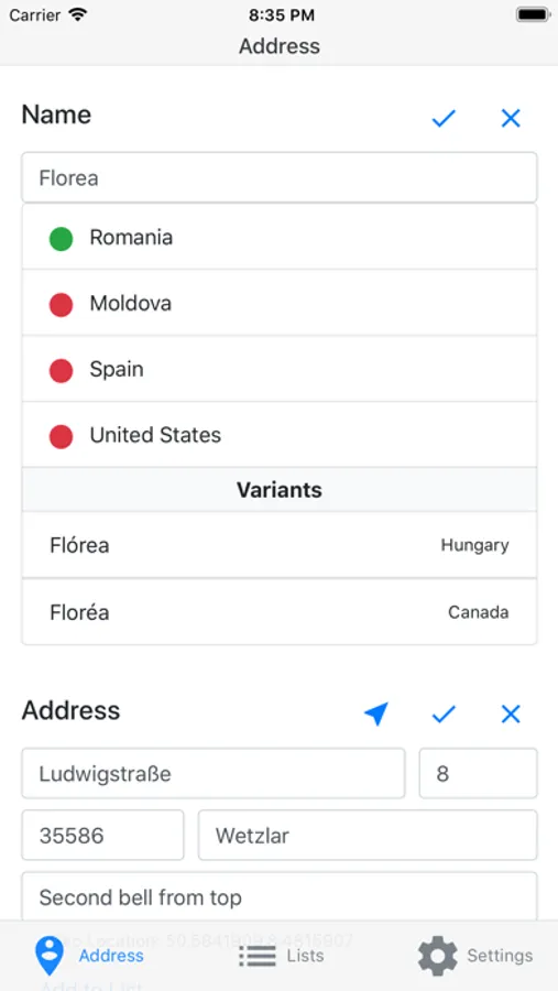 • Automatically complete an address.