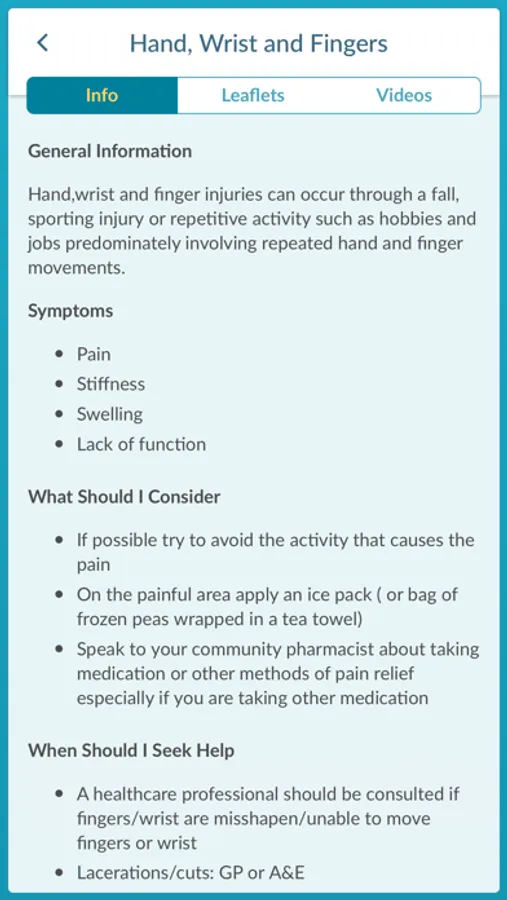 • As a first port of call for information about your MSK injury/condition • In conjunction with your medical treatment • For self-management of your injury/condition