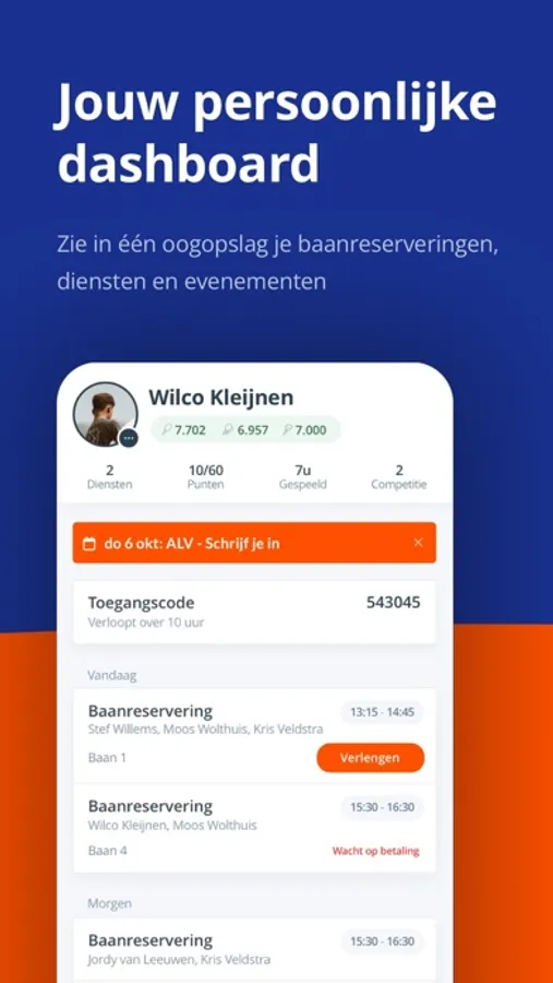 Met de KNLTB ClubApp regel je alles rondom tennis en padel op jouw club. Via jouw persoonlijke tijdlijn ben je altijd op de hoogte van de aankomende activiteiten die voor jou belangrijk zijn. Daarnaast kan je banen reserveren, speelmaatjes zoeken, jezelf inplannen voor clubevenementen, wedstrijdinformatie inzien en je digitale KNLTB ledenpas tonen.