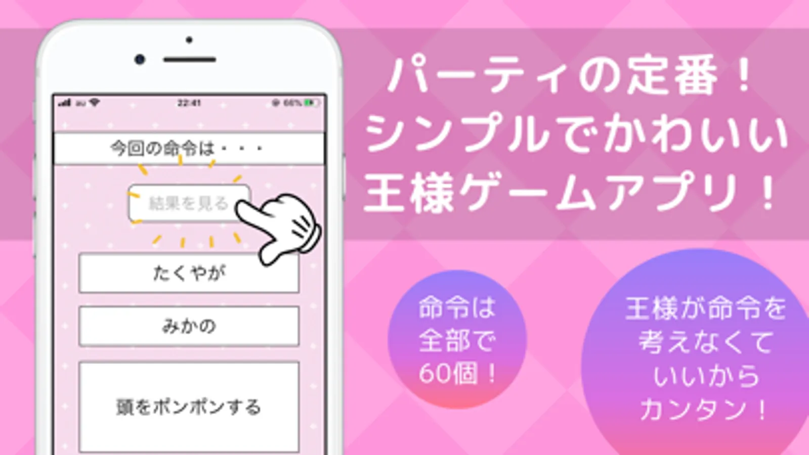 3.「結果を見る」ボタンを押すとパネルがめくれて、命令を実行する2人のニックネームと、命令が表示されます。