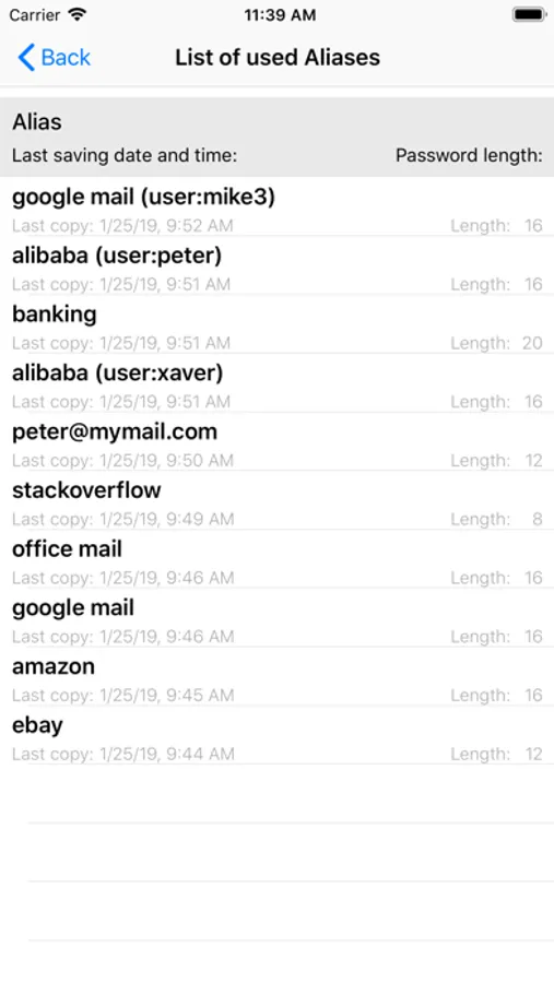 The generated passwords are not stored in the app, so that a theft of the passwords is not possible.