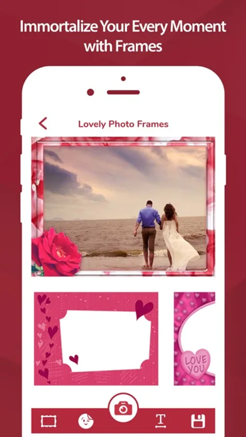 • Create photos & pictures with love-themed frames, stickers, and texts