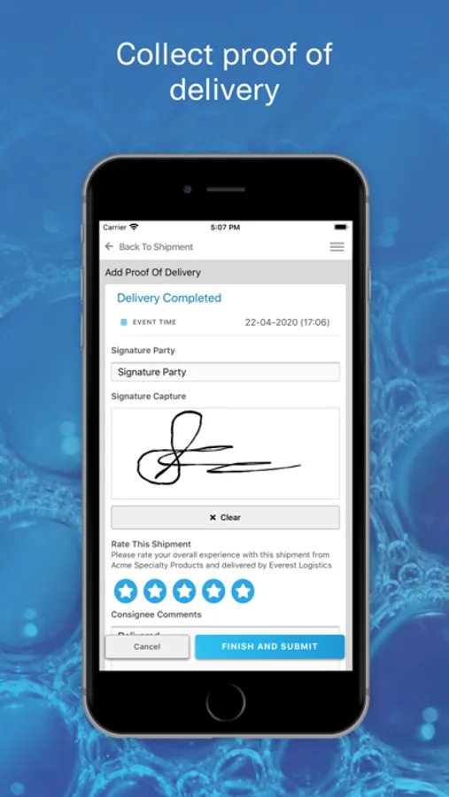 Elemica’s ePOD app enables drivers to provide real-time information for shipments in the Elemica network. Drivers can see their assigned shipments, enter milestones such as arrivals and departures, and acquire consignee signatures and feedback. When there is more information to share about a shipment, for example when a disruption occurs, the driver can update ETAs, log discrepancies and reasons and attach images. Shippers receive all of this information instantly, allowing them to provide better delivery updates to their customers. The Consignee Feedback feature collects a rating and comments from the signature party, providing shippers with valuable information that has never before been available.
