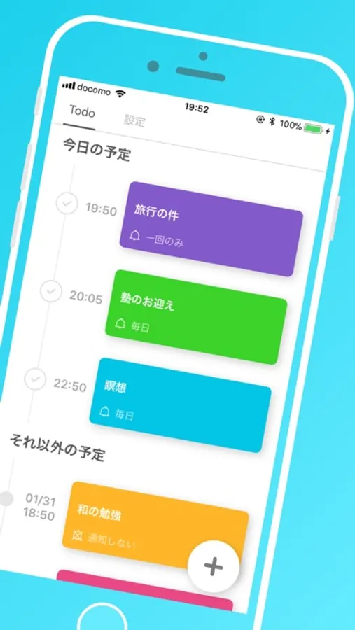 このアプリでは、追加されたメモは「今日の予定」と「それ以外の予定」に分類されます。追加された めも は、通知がある日には自動的に今日の予定に分類されるので、アプリを立ち上げれば直ぐに通知の予定を見ることができます。