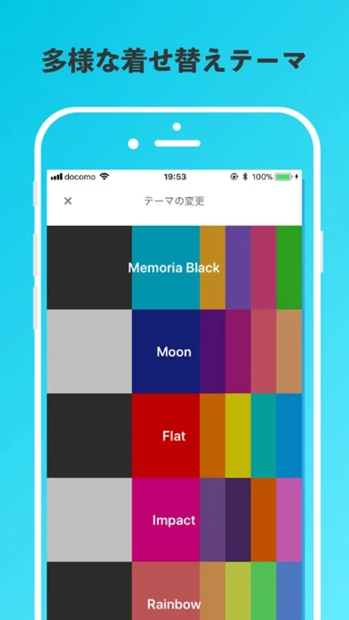 12種類の着せ替えテーマは、1つ1つこだわりながら作成され、かわいい・オシャレな特別なアプリになるよう作成されました。流行りのダークモードをベースとした着せ替えテーマも多数存在します。
