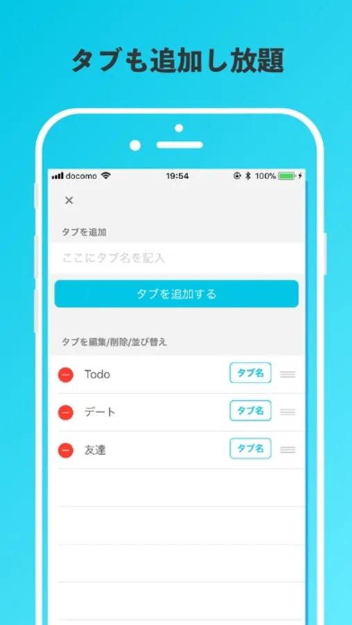 設定の中にある「タブを追加・編集・削除」から、新しく追加することができます。編集・削除・並び替えもこちらから行うことができます。