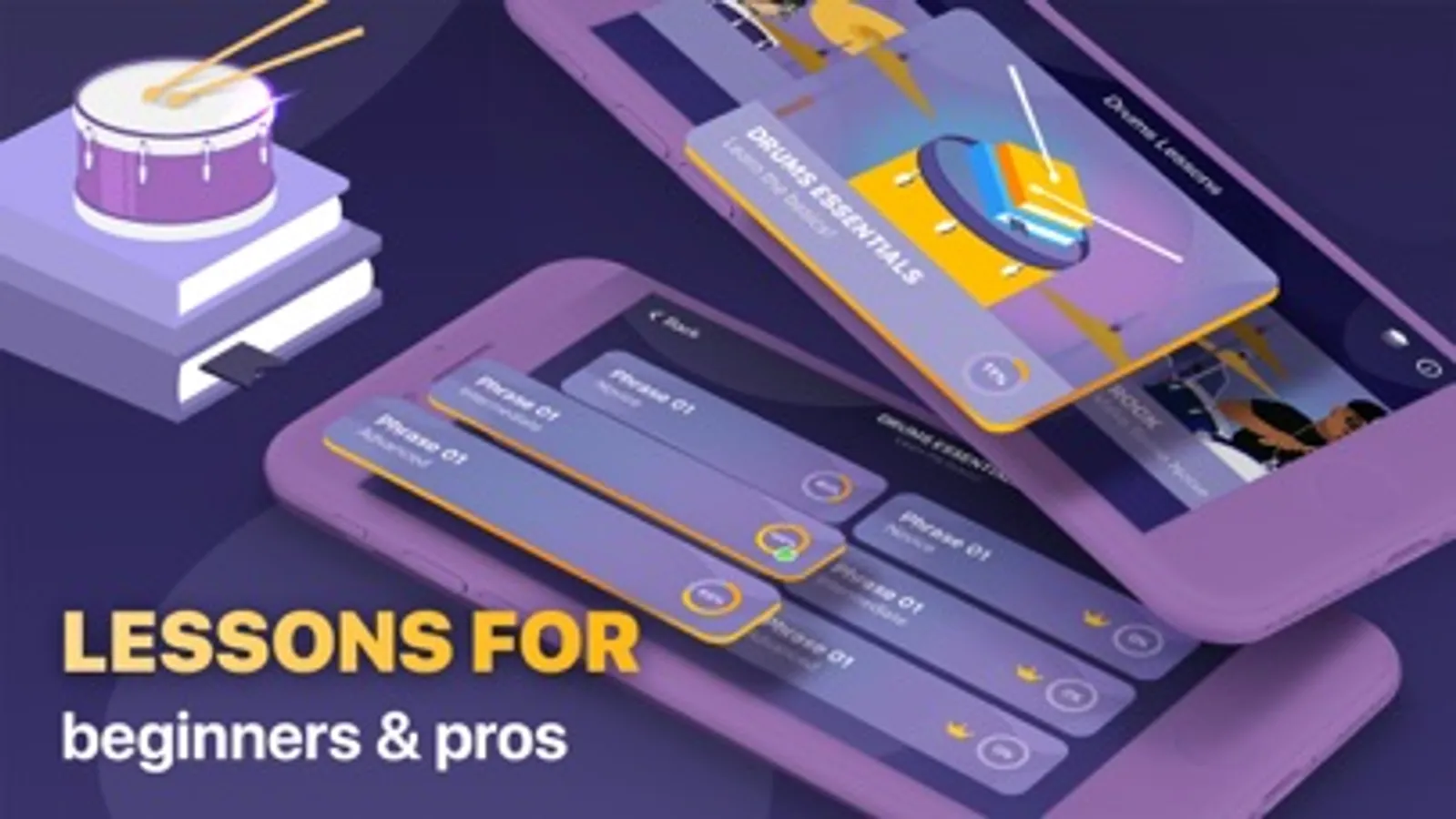 Discover the ultimate mobile drumming tutor and experience authentic drum lessons as you go from a beginner to pro! Learn drums, play games and feel the power of the beat like never before! Our intuitive drum lessons will teach you the knowledge and skills every drummer needs. You’ll improve your sense of rhythm, timing and learn the fundamentals of drumming theory.