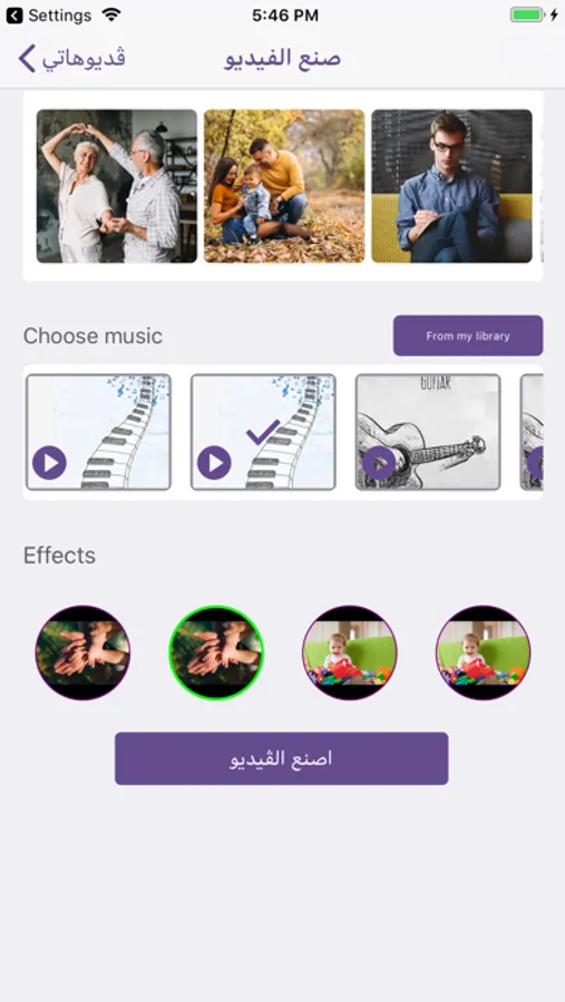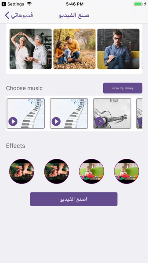 ـ آختيار الصور من مكتبة الهاتف الخاص بك وجمعها في فيديو