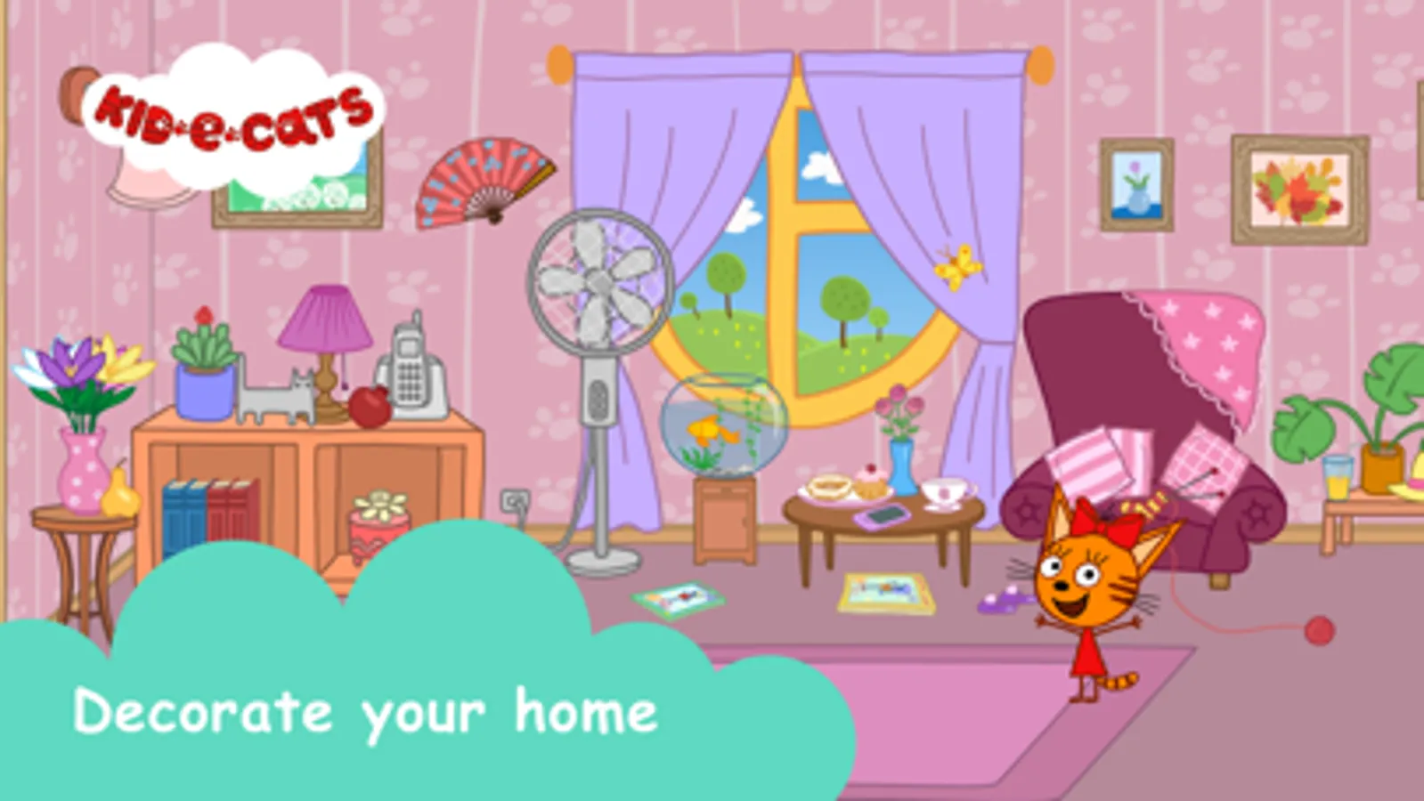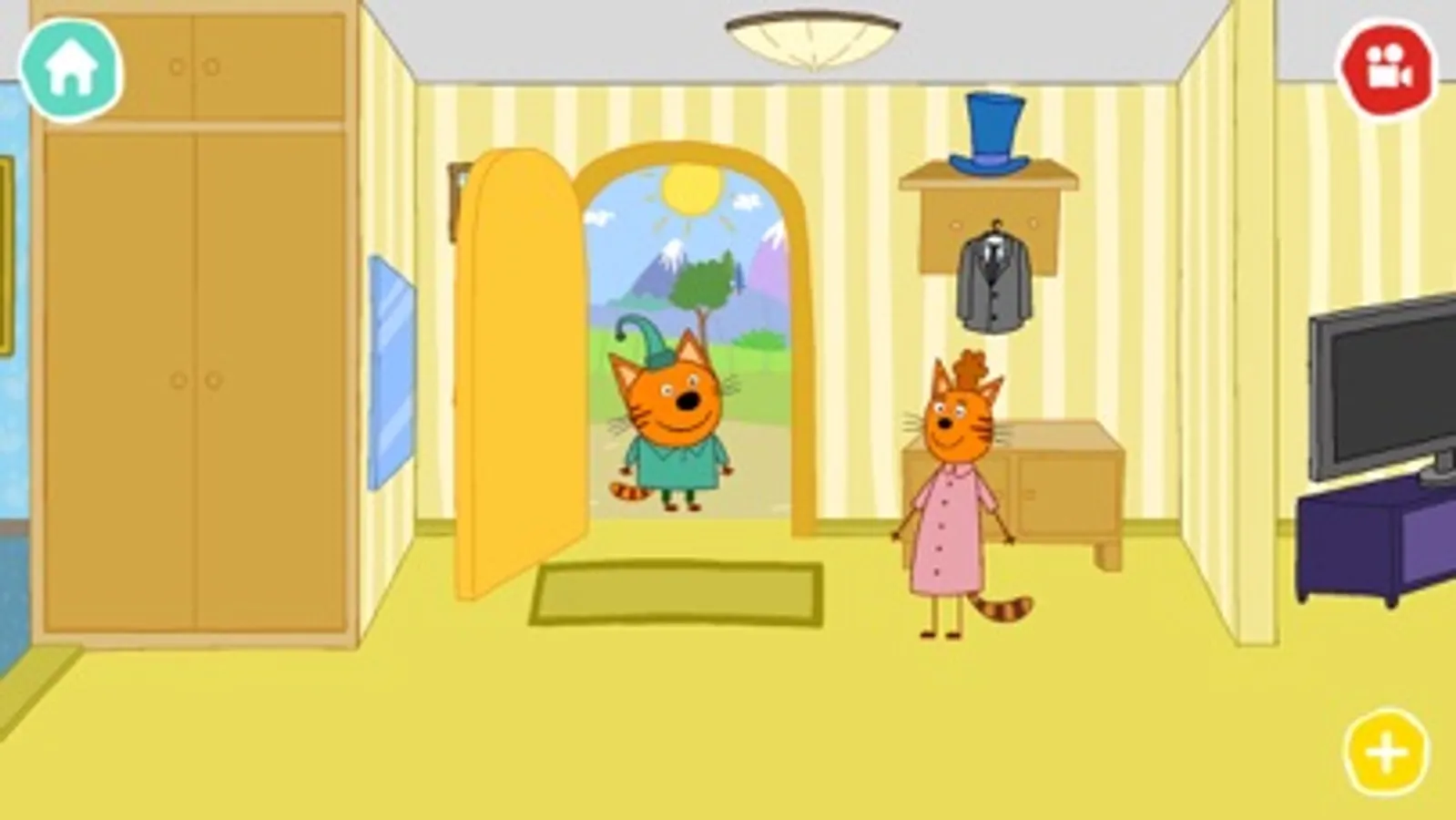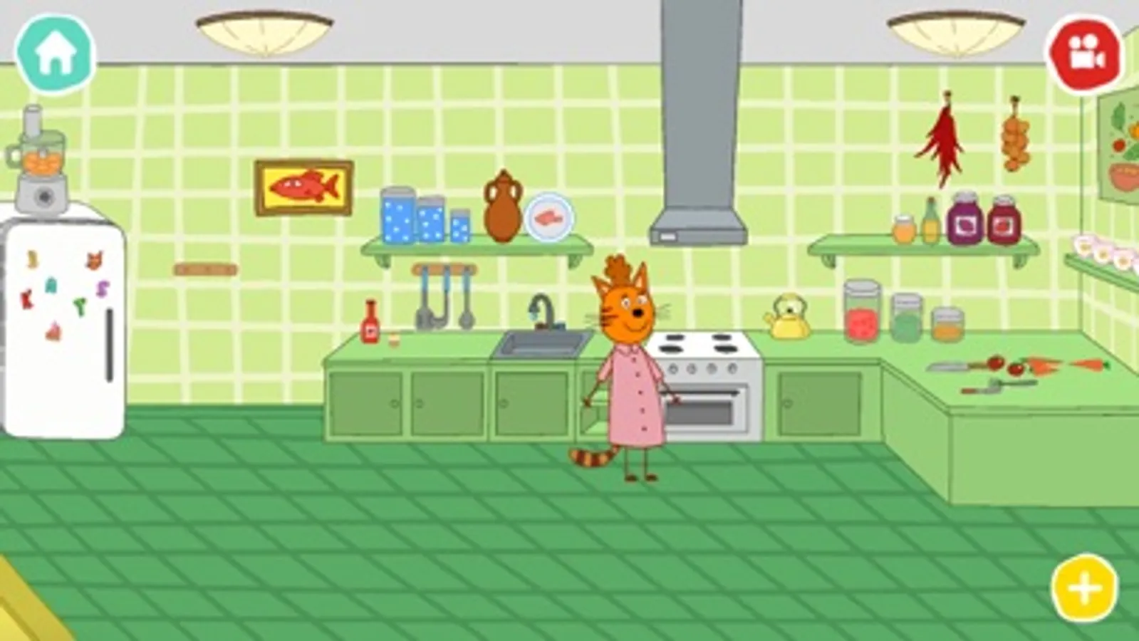 We’ve built you four floors of fun – Daddy’s Office, the Kittens' Bedroom, the Kitchen, the Living Room, Mommy’s Office, the Basement, the Attic Exercise Room, and more – where you can play and have fun with your favorite characters. Look closely! Every room is full of hidden surprises. Peek in the closet and the dresser, the refrigerator and the pantry. You can investigate anything you want. Dress the kittens in different outfits, think of games and stories for them... and record your own cartoons and share them with friends.