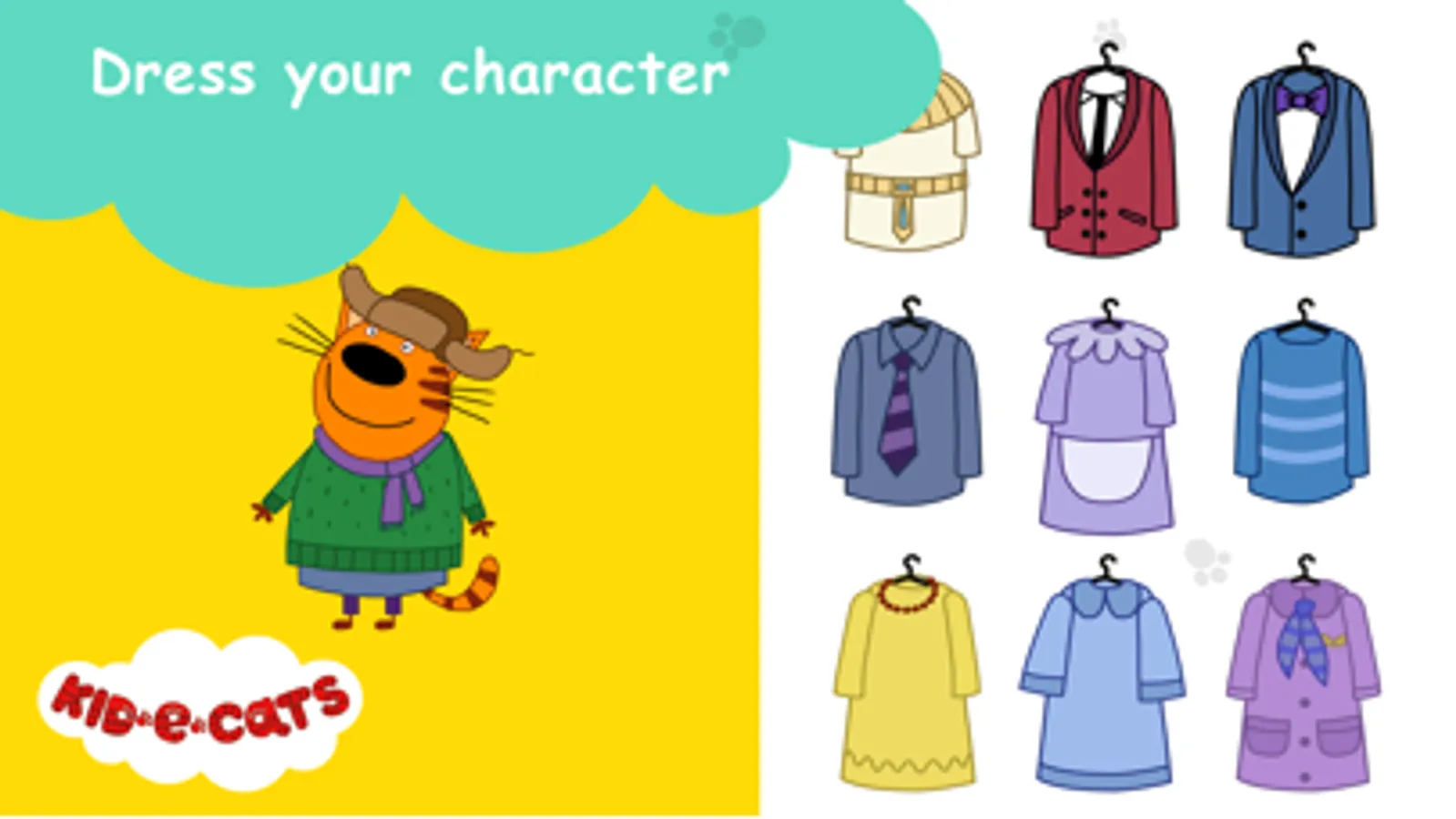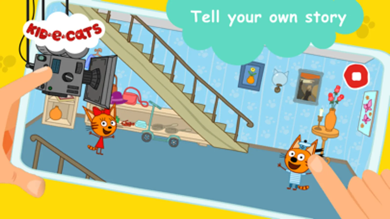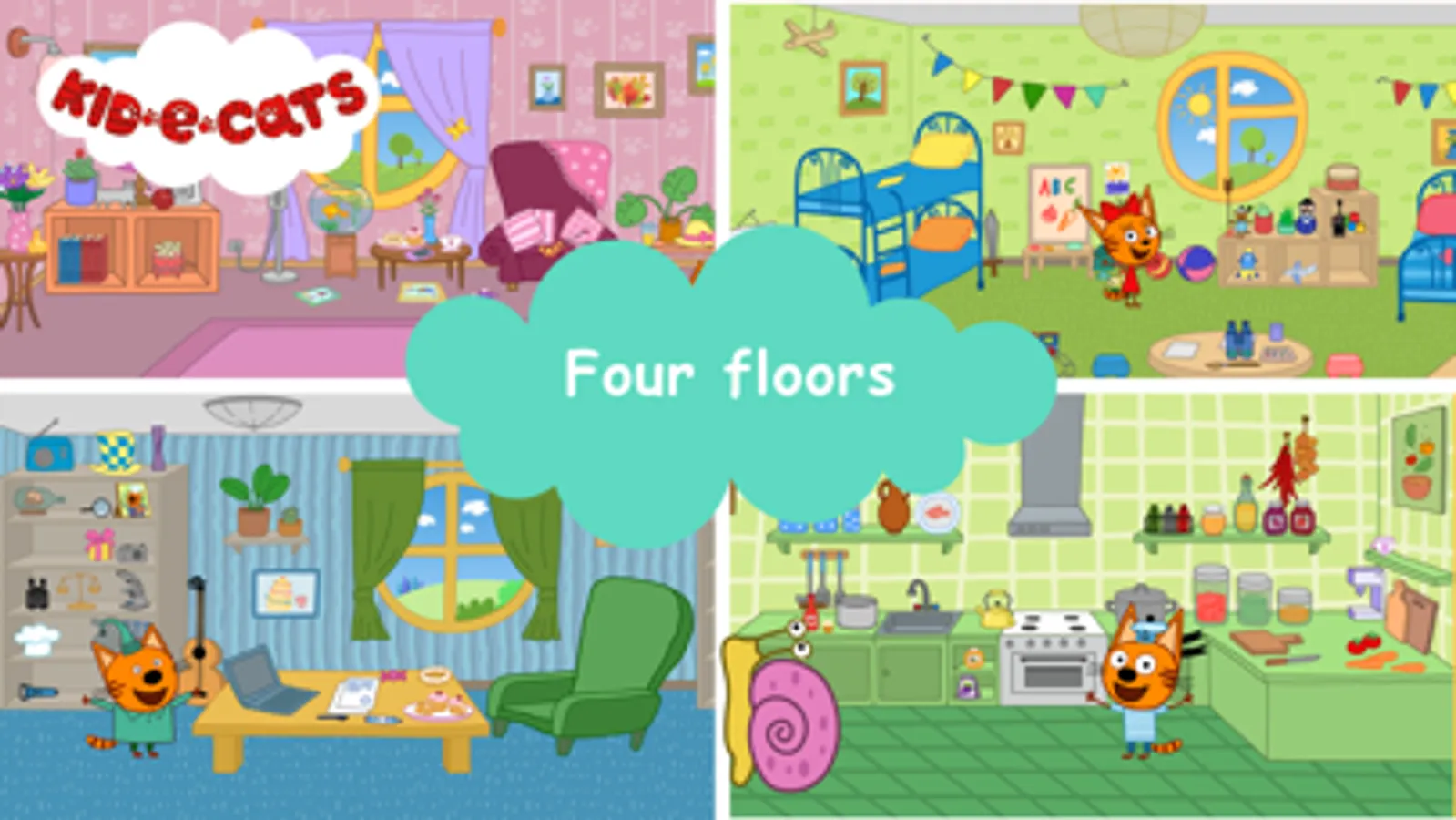 We’ve built you four floors of fun – Daddy’s Office, the Kittens' Bedroom, the Kitchen, the Living Room, Mommy’s Office, the Basement, the Attic Exercise Room, and more – where you can play and have fun with your favorite characters. Look closely! Every room is full of hidden surprises. Peek in the closet and the dresser, the refrigerator and the pantry. You can investigate anything you want. Dress the kittens in different outfits, think of games and stories for them... and record your own cartoons and share them with friends.