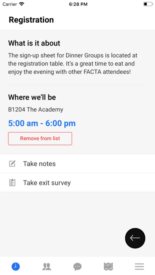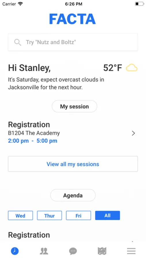 The FACTA Conference application gives attendees access to the agenda and various features.