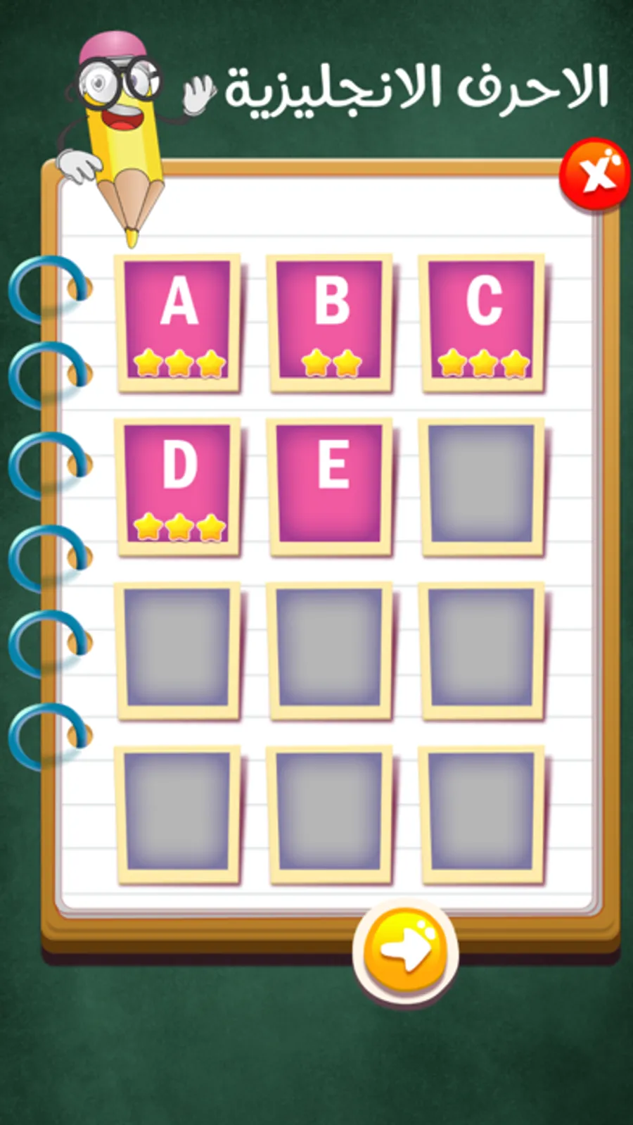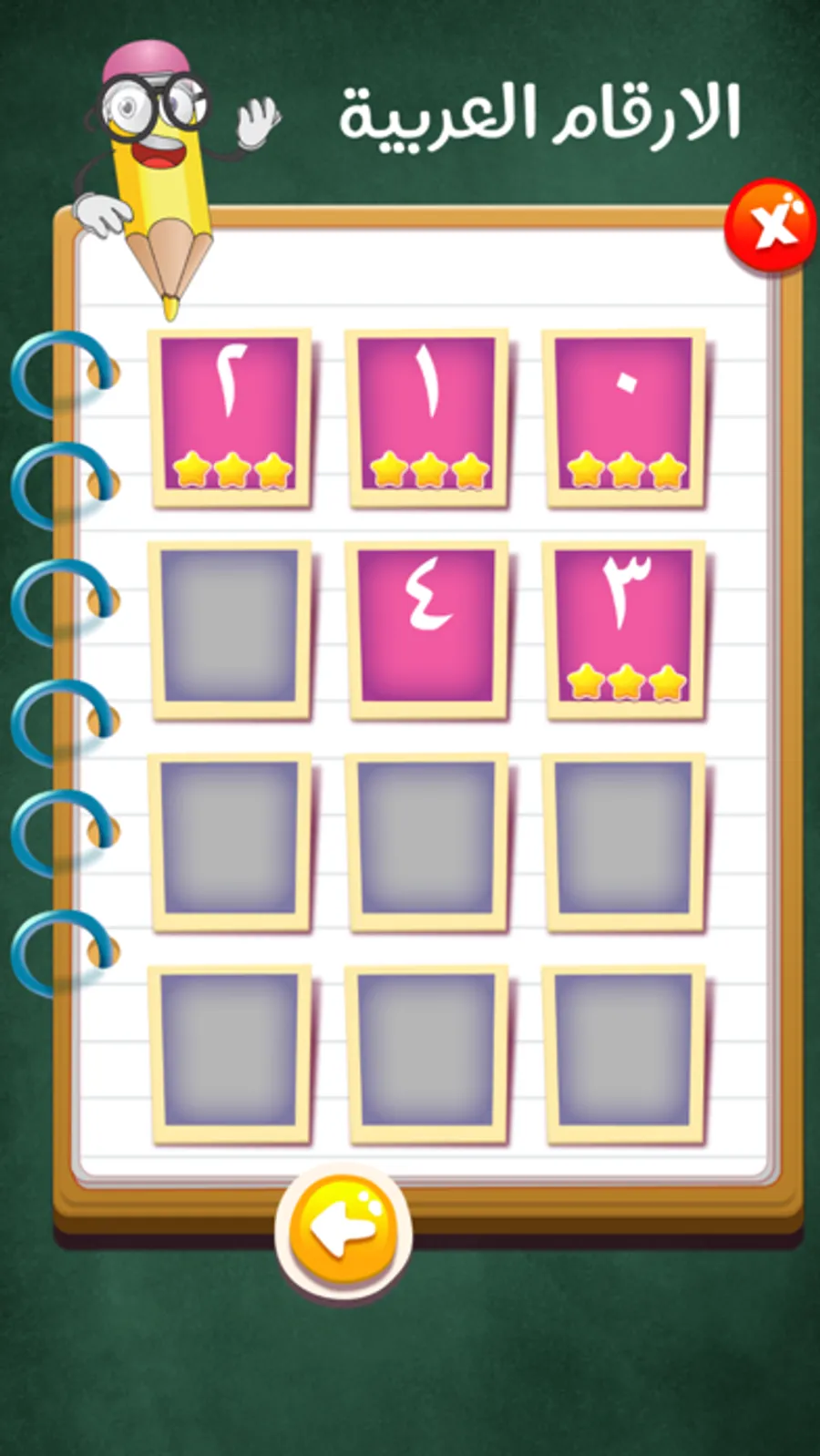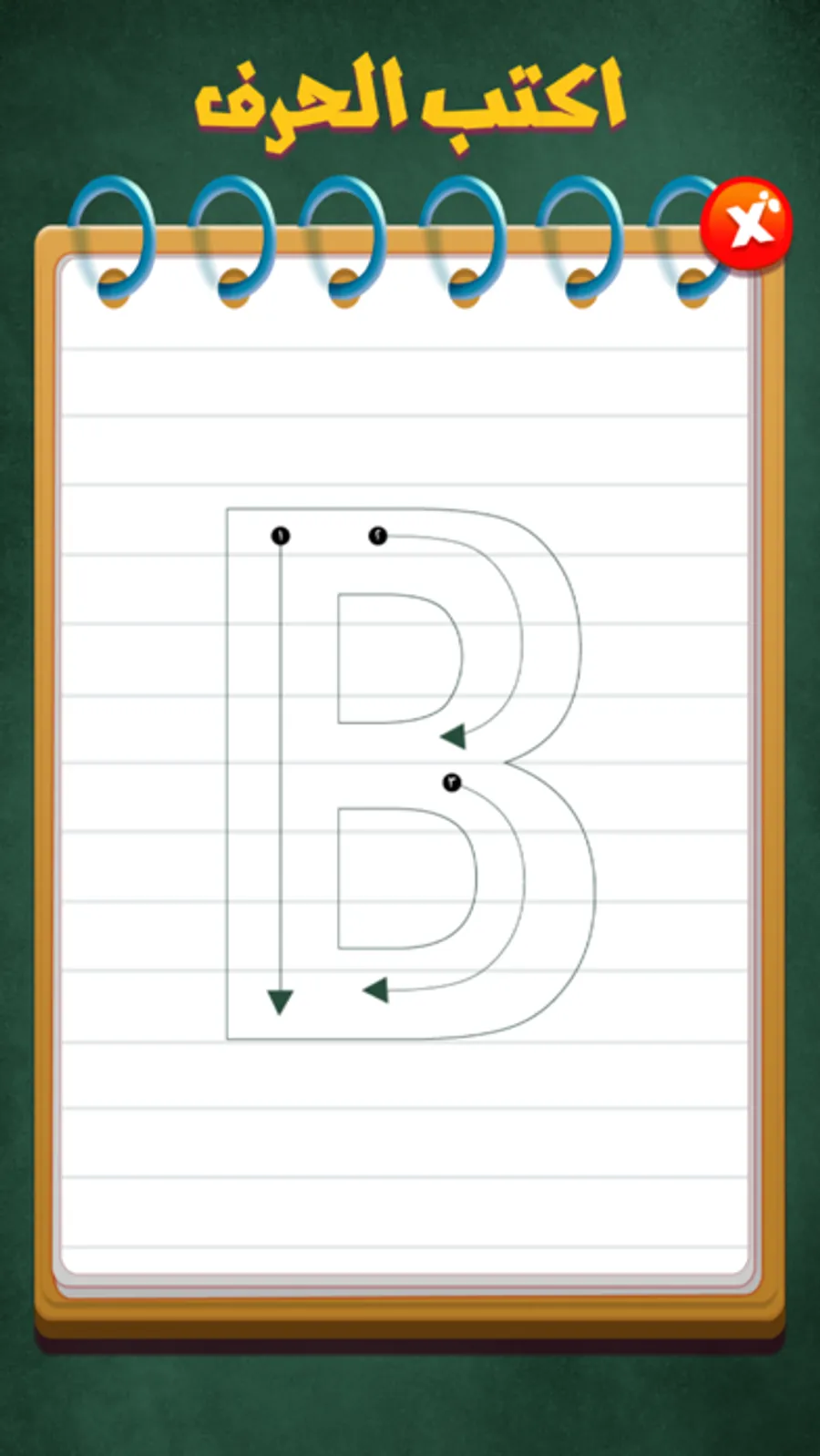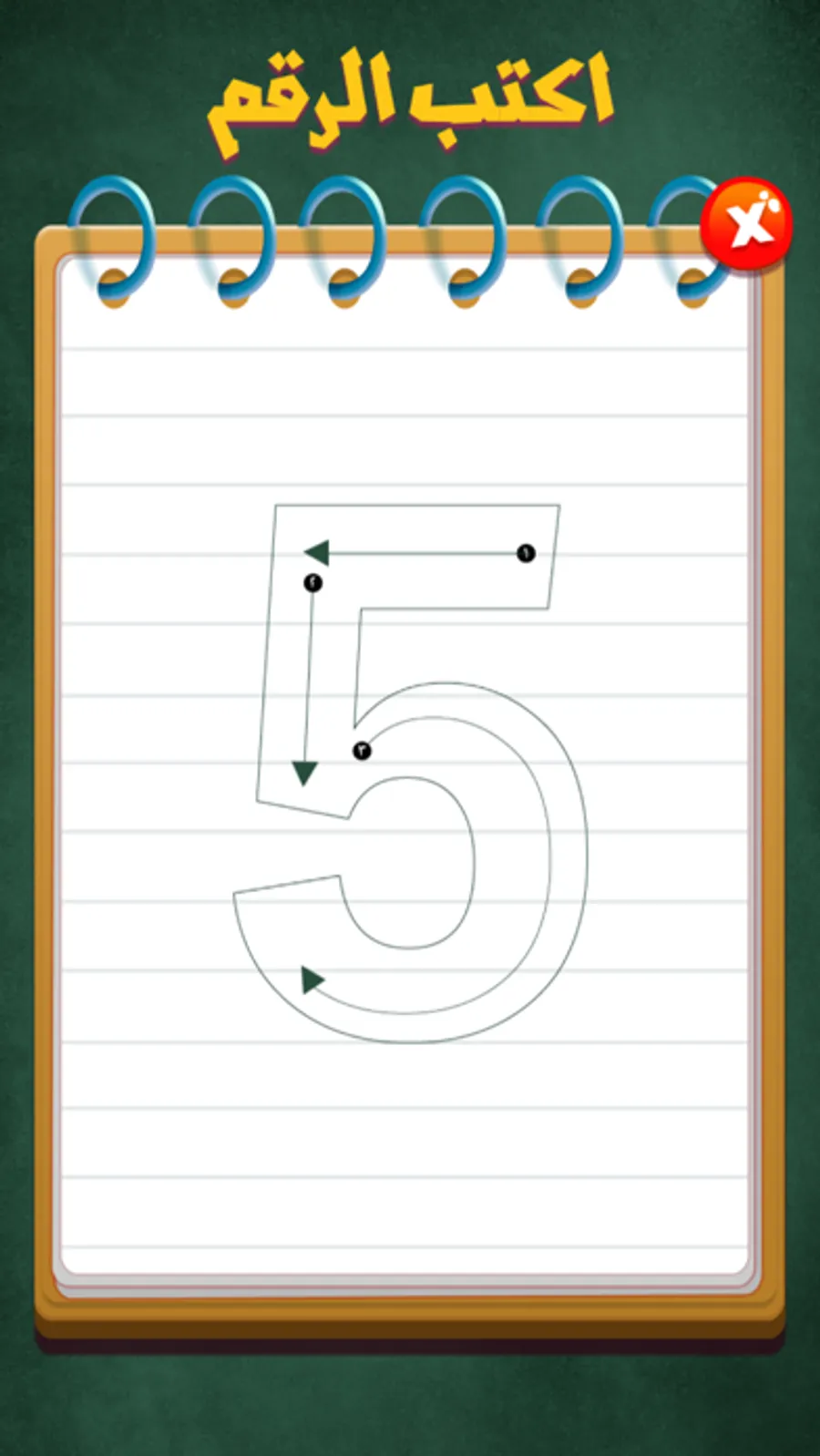 التطبيق يعلم طفلك طريقة كتابة الحروف والأرقام بشكل صحيح عن طريق الأسهم الموجودة داخل كل حرف ورقم