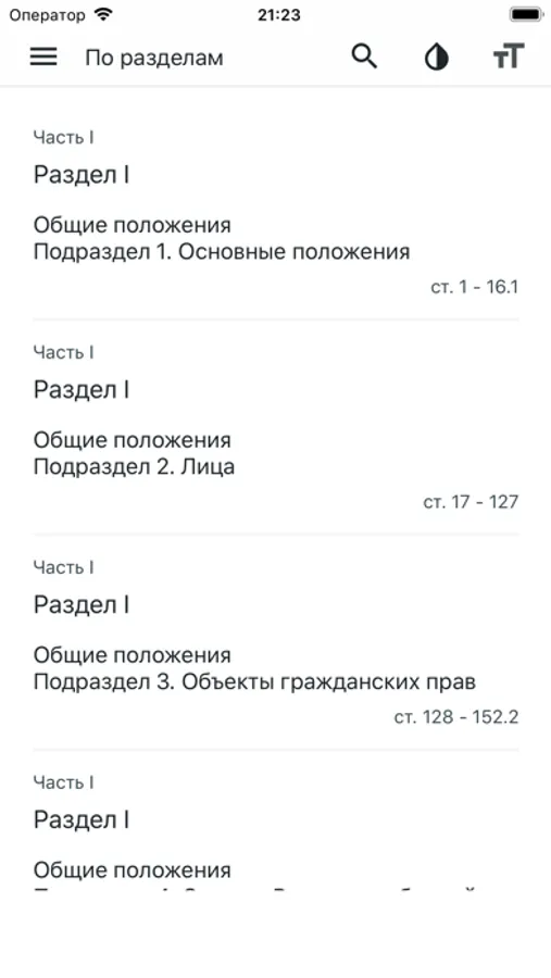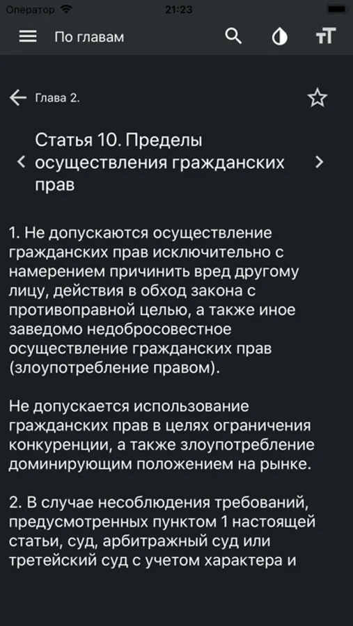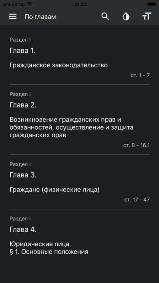 Перелистывание между статьями вправо-влево, аналогично разделы и главы