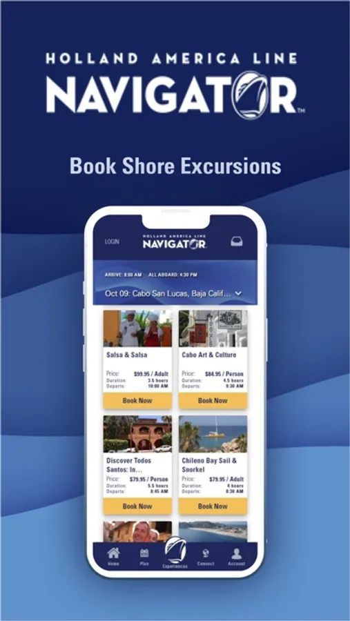 Use the Holland America Line Navigator app when in port to check your daily itinerary, book shore excursions and make dining reservations. So, you can just relax and enjoy your time ashore, knowing you’ll never miss an important event during your cruise.