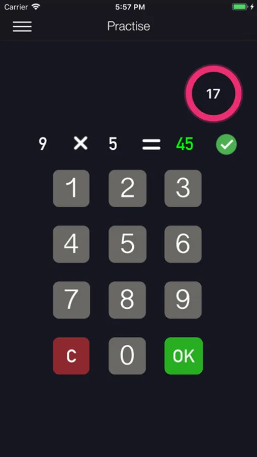 When you start Practice the countdown will start in second's allow you to see the total seconds you have taken for the Practice. Practice questions will appear depend on your settings. Once you enter the answer press OK button. Then the app will tell if your answer is correct or wrong and record your answer then will move on to the next question. The Practice will end when the total questions are answered.