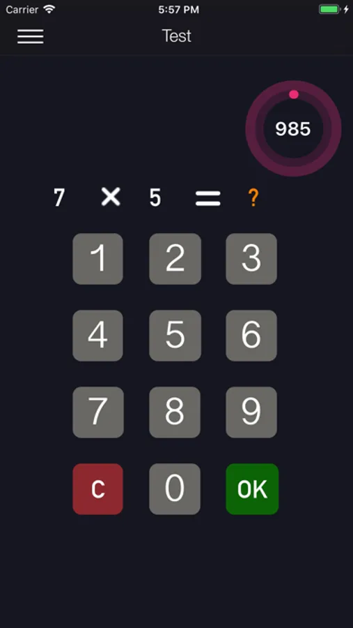 When you start the test the countdown will start in second's you can see the graphical representation time used/time left, Test questions will appear depend on your settings. Once you enter the answer press OK button, the app will then record your answer, and move on to the next question.