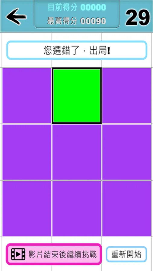 Each level has several squares, you must choose different color blocks or graphics within the time limit, if you choose the wrong one or exceed the time limit, then game is over.